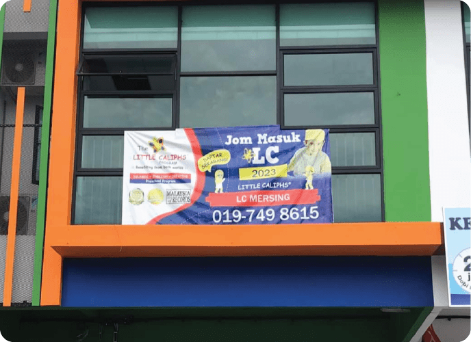 Little Caliphs® Kindergarten Little Caliphs Kindergarten Tadika Prasekolah Taman Wawasan, Johor Operator Name: Herdalina Binti Sulaiman Contact Number 019 749 8615 Email Address: tmnwawasan.mersing@littlecaliphs.edu.my Kindergarten Name: Tadika Khalifah Lestari Address: No. 3 & No.3-01 Jalan Seri Mersing 2, Pusat Perdagangan Mersing , 86800 Mersing , Johor. Facebook Page: https://www.facebook.com/lc.mersing Instagram - Tiktok: -